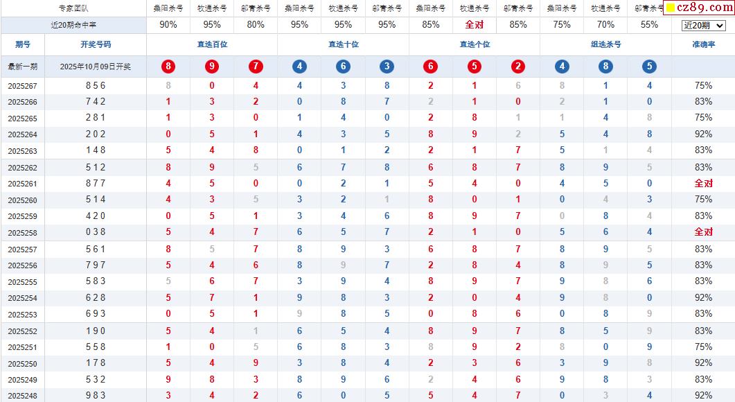 25年268期彩宝贝专家体彩P3杀号定码图表